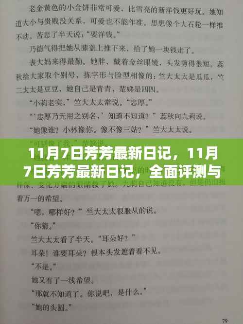 在与其他日记类应用对比中,“11月7日芳芳最新日记”表现出其独特之处,其在满足基本日记记录功能的基础上,融入了心情识别、数据分析等先进功能,其界面设计、操作便捷性以及隐私保护等方面都做得非常出色,与其他应用相比,它更能满足用户的个性化需求,提供更好的用户体验。